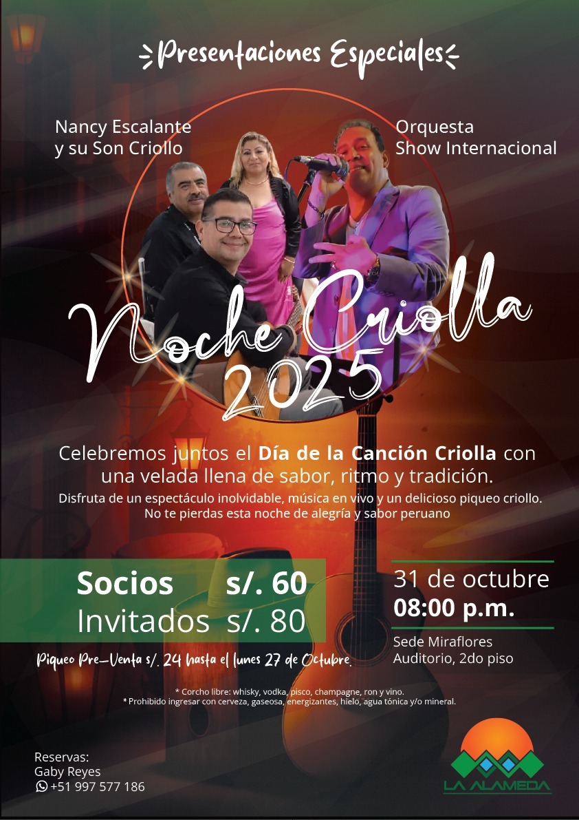 Músicos invitados, piqueos criollos a partir de las 9 P.M Tikets en caja 3er piso, rese...